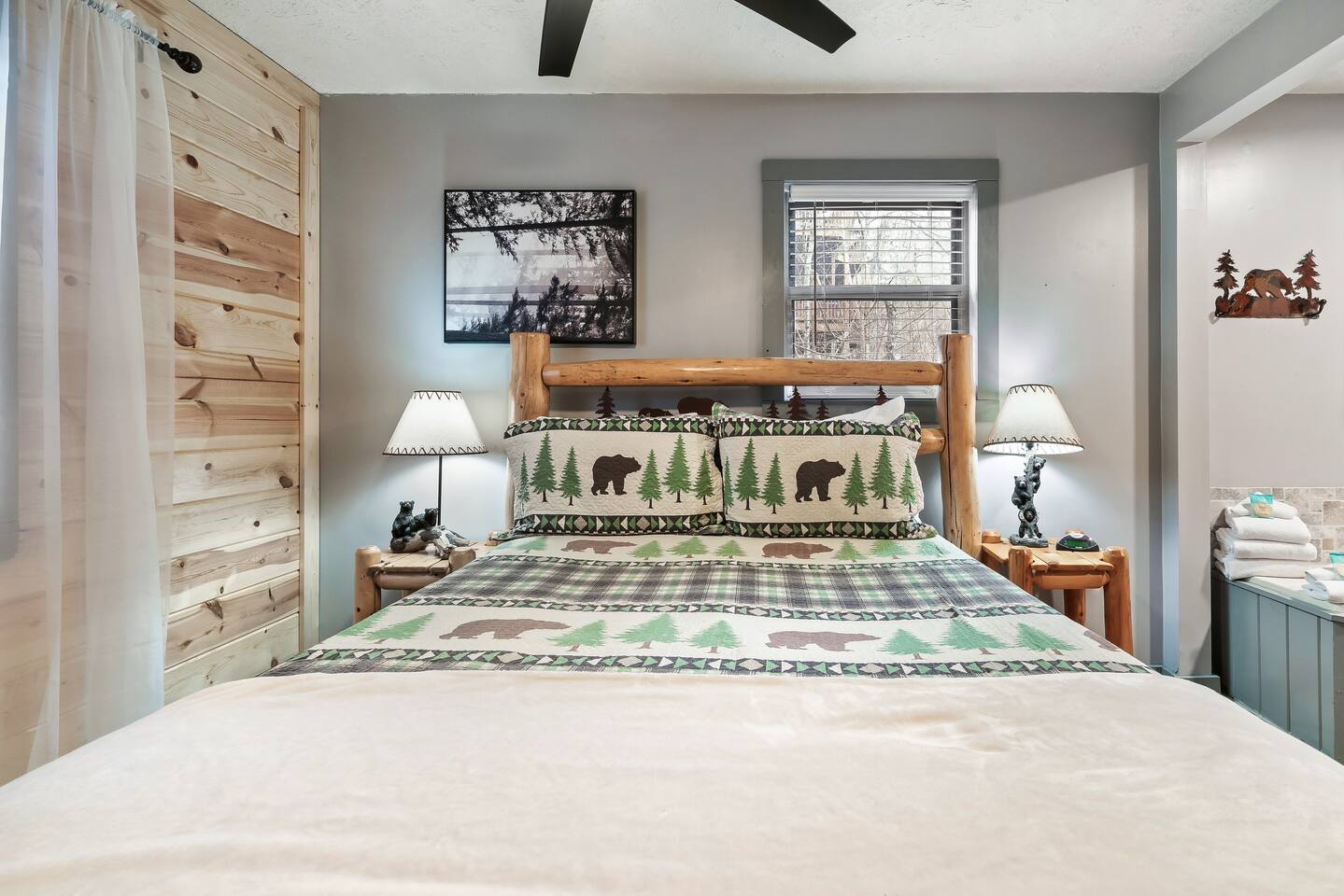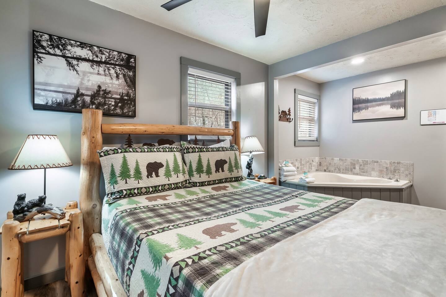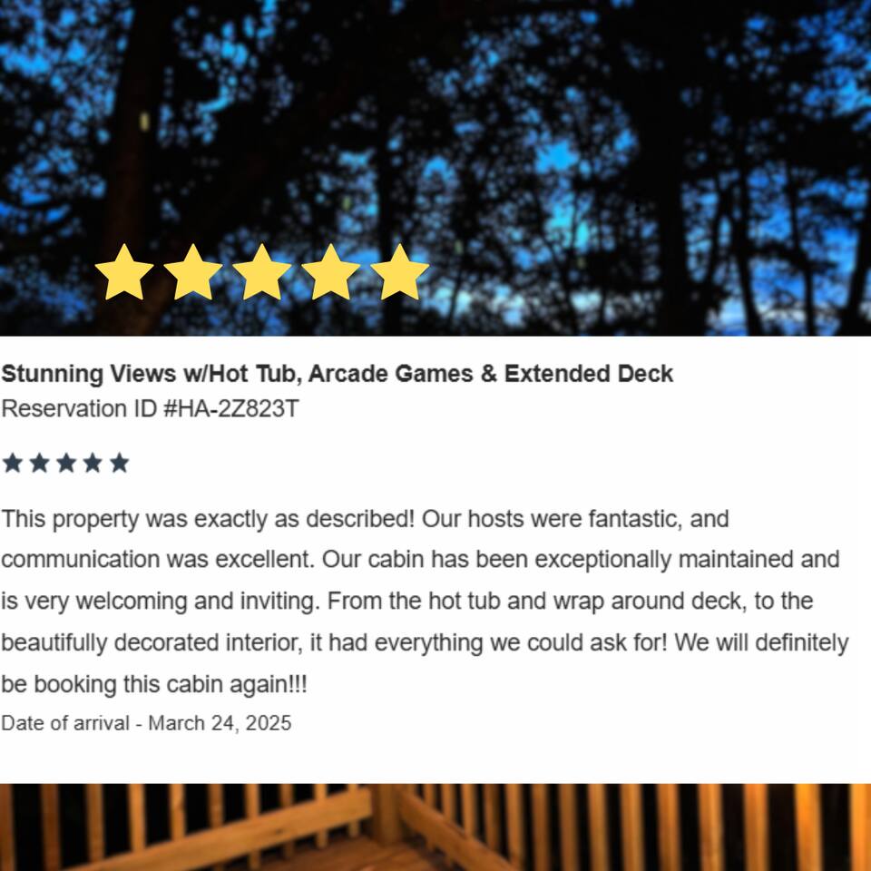 ๐ฉฑPrivate Hot Tub ๐ Private Deck ๐ฝ๏ธ Fully-equipped kitchen with stainless steel appliances ๐ฎ Arcade table with hundreds of new and retro games ๐ฃ Public Fishing Pond 0.9 miles/3 minutes ๐ก 5 mi. from Main Parkway, Pigeon Forge ๐ข 7 mi. from Dollywood ๐ฒ 8 mi. from Gatlinburg ๐๏ธ 8 mi. from Smoky Mountains National Park ๐๏ธ Sleeps 6 (Two Queen beds & One sofa bed) ๐ Reliable High-Speed Internet (200Mbps) ๐ Available to park 2 cars ๐งบ Washer and Dryer ๐ Spectacular Mountain Views from Deck & Porch ๐บ Flat screen smart TVs โญ๏ธ 5- Star Location - Access to community amenities provided by the HOA Located atop a peaceful mountain, our charming short term rental seamlessly blends convenience and serenity, creating the perfect retreat for newlyweds, couples, or groups of up to six guests. As you enter this charming 2-bedroom, 2-bath cabin, you'll immediately feel welcomed by its cozy ambiance, blending rustic charm with modern comforts. The living room invites you to relax after a day of exploring, offering plush seating and a fireplaceโperfect for snuggling up with family or friends on cool mountain nights. Prepare delicious meals in the fully-equipped kitchen, complete with stainless steel appliances and ample counter space. Share meals together at the dining table, or take advantage of the beautiful weather on the expansive deck, where breathtaking views of the surrounding mountains await. After a day of exploring the nearby attractions, retreat to the suite with a QUEEN bed or sleep in the QUEEN bed in the guest bedroom. There is also a pullout sofa which will sleep two additional guests. Each bed offers, high end bedding and the bedrooms offer ample storage space for your belongings. With two bathrooms, including one with a luxurious soaking tub, there's plenty of space for everyone to relax and refresh. Step outside onto the spacious deck and take in the breathtaking views that stretch out before you. The private hot tub invites you to relax and unwind, all while soaking in the natural beauty of the surrounding mountains. For those seeking adventure, the Great Smoky Mountains National Park is just a stone's throw away, offering endless opportunities for hiking, wildlife viewing, and scenic drives. Explore the charming shops and restaurants of Pigeon Forge and Gatlinburg, or simply relax and enjoy the peaceful surroundings of your mountain retreat. Whether you're craving adventure or a peaceful retreat, our cozy cabin, perfectly situated between Pigeon Forge and Gatlinburg, offers the ultimate getaway. Reserve your stay now and create unforgettable memories surrounded by the stunning beauty of the Smoky Mountains. Immerse yourself in luxury and tranquility at our Smoky Mountain cabin, complete with top-tier amenities. From breathtaking mountain views to relaxing soaks in the hot tub, this cabin promises lasting memories for your entire group. With its prime location offering easy access to the best attractions in Gatlinburg and Pigeon Forge, this will quickly become your favorite Smoky Mountain escape. Please note: The property is located high up on the mountain and while a beautiful drive, roads are narrow with extensive curves. An AWD or 4WD vehicle is recommended during winter months due to the steepness of mountain drive.